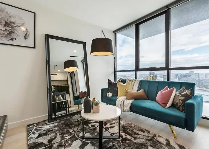 Este apartamento está ubicado en el barrio central de negocios de Melbourne, a 5 minutos en coche del Campo de críquet de Melbourne. Stylish Southbank Apt Sweeping Bay & City Views también está a una distancia moderada del Teatro Malthouse.